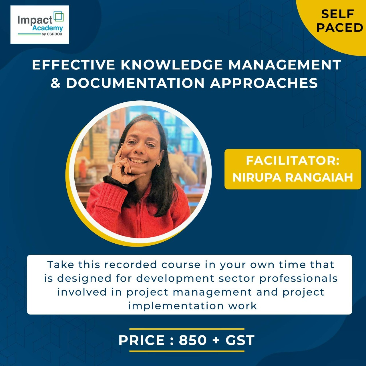 - The first module elaborates the definition of knowledge management, its purpose and the objectives it serves. The module takes a look at documentation as a form of knowledge management and explores how projects, programs and interventions are documented over their lifetime via various methods. Keeping in mind that the process documentation is the most elaborate of documentation forms, it further explores the key questions that a process document answers.